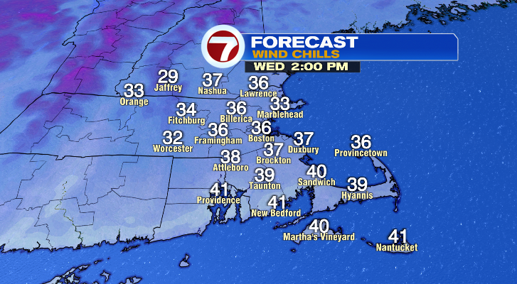 Early Wednesday morning with the breeze, it’ll feel like the mid to upper 20s. So once again, you’ll want your full winter gear as you commute to work. Even during the warmest part of the day, the breezy conditions will make the highs in the low 40s feel like the 30s.