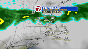 For Father’s Day, we’ll start off with clouds, with showers marching in by midday, especially along and north of the Pike. A few embedded downpours/thunderstorms are possible by the latter half of the afternoon, so if your outdoors and you hear thunder, be sure to head indoors and let the storm pass.