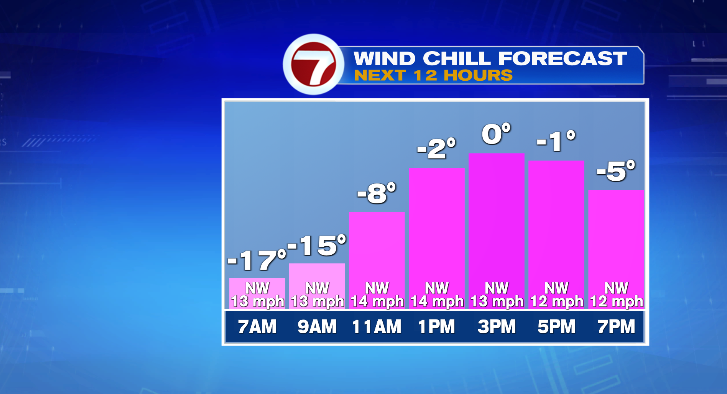 With wind gusts still largely in the 20s and 30s, it will feel like temperatures are between -10 and -30 throughout the morning. Even in the afternoon, high temperatures are only in the teens, and it will feel like they’re right around zero.