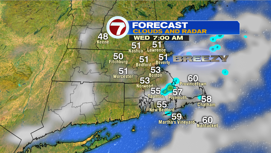 Skies start to clear in the afternoon in most spots, and it will be cool in the low and mid 60s. It will feel chilly with a breezy northeast wind.