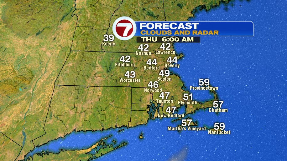 Temperatures drop into the 40s and 50s tonight. By 7 AM most towns will be in the low 50s. The day starts mostly cloudy with the chance for sprinkles.