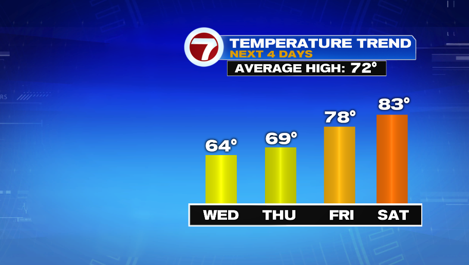 7Weather- The next two days are cool, especially Wednesday, and then the week ends with warmer weather. This weekend will feel more like summer with some areas getting close to 90º.