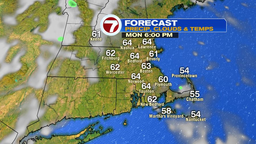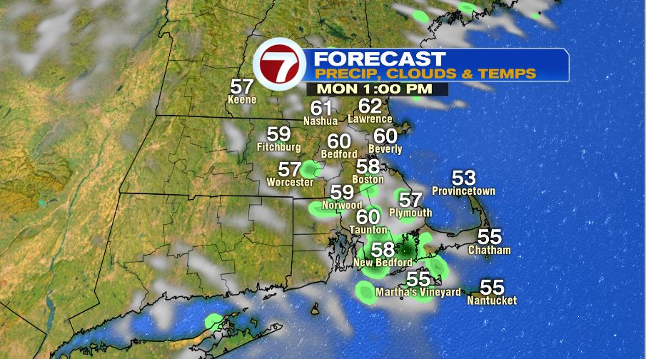 Monday starts mainly clear and cool in the mid 40s. Some clouds move in late morning and there will be a mix of clouds and sun the rest of the day. There could be a spot shower from 12-4 PM. Highs will be cool and below average in the low and mid 60s.