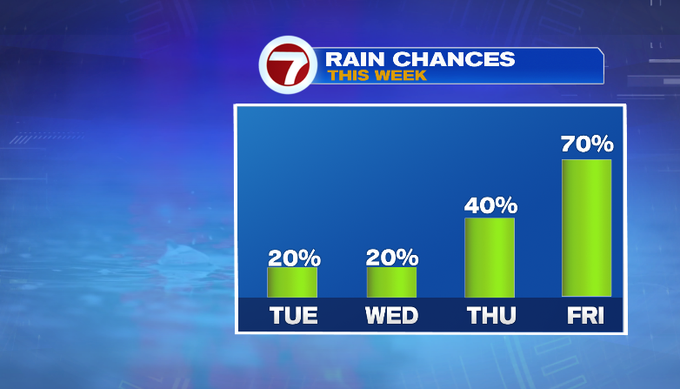 Showers could linger into Saturday morning. Overall, our work week is dominated by cool high temperatures.