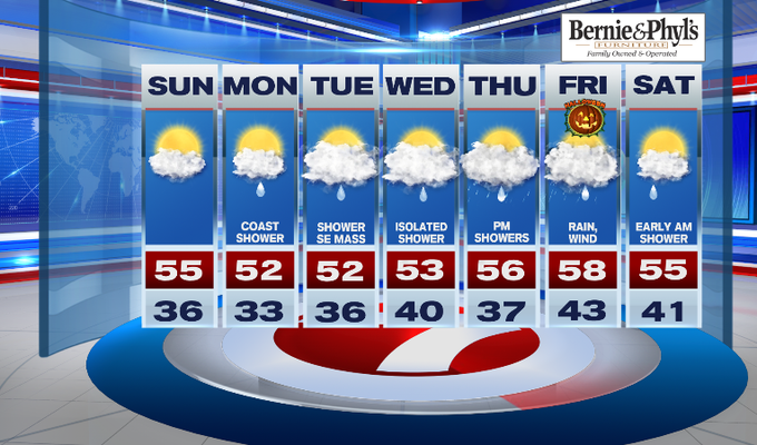 This morning we’ve had a few sprinkles for the Sea Coast, North Shore and Nantucket. There’s a chance for a sprinkle or spot shower later today for these areas.