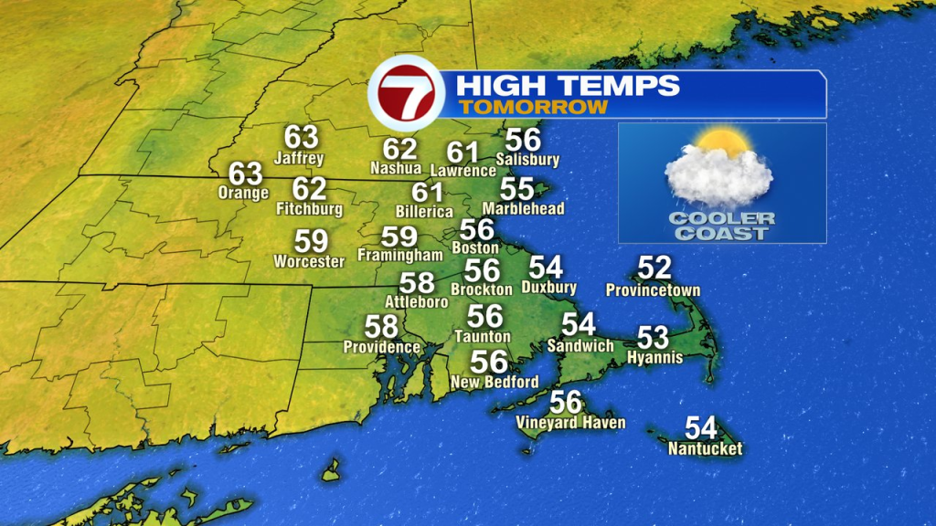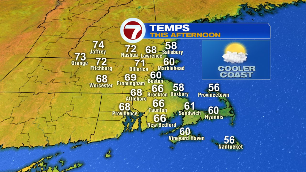 The day is a fairly good one overall as highs recovery in the mid 60s to low 70s inland and temps run in the upper 50s to low 60s near the coast. The ocean breeze does freshen up through the afternoon, so coastal temps will likely backtrack a bit with partly sunny skies.