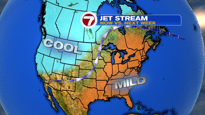 But thankfully this pattern is reaching the end of its shelf life. The jet stream is almost going to flip-flop where it is now, sinking down on the West Coast causing it to bulge northward over the Northeast. That bulge northward will allow the warm air to return to New England for the weekend and especially next week.