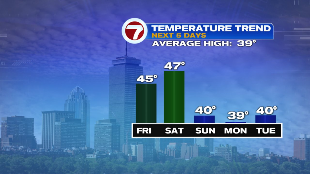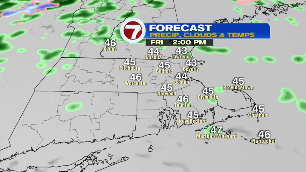 While not 100% rain free, Saturday starts to offer improvements to the weather as winds shift west. A few spotty showers in the morning/midday, will yield to mostly dry times in the afternoon as a few breaks of sun emerge. Temps run up into the mid to upper 40s, marking yet again, another relatively mild day.