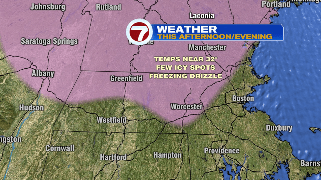 Blah! Another damp and dreary start to the day with areas of drizzle keeping the roads on the wet side for the morning commute. Despite temps starting off in the low to mid 40s, the numbers will slide a bit through the day with afternoon and early evening temps in the 30s for most locations away from the coast. In fact, late this afternoon and this evening, temps near the freezing mark near and northwest of 495, allowing for a few icy spots to develop, especially in the higher terrain of northern Worcester County.