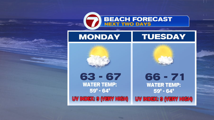 The next two days are decent beach days. Monday has a mix of clouds and sun with temperatures near 65º. It’s a bit warmer at the beach on Tuesday and skies are mostly sunny.