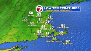 Low temperatures in the morning will dip down between 50-60º. There could be a few towns in Southern New Hampshire that fall into the upper 40s.