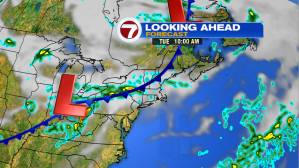 As of now, the best chance for rain from that low will be along and south of the Mass Pike.