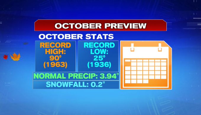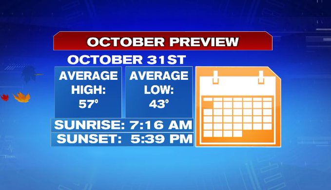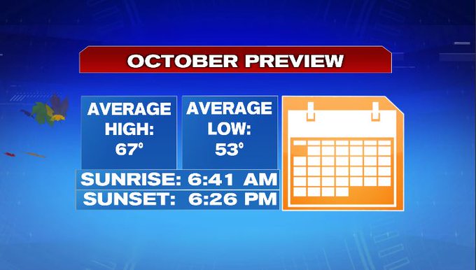 Today we turn the calendar page into October. Here’s what this month’s weather typically has in store for us. Today’s average high is 67°, sunrise is at 6:41 am and sunset at 6:26 pm. By the end of the month, our average high temperature falls into the upper 50s. Our mornings start off darker with sunrise past 7:00 am, and the sun sets closer to 5:30 am.