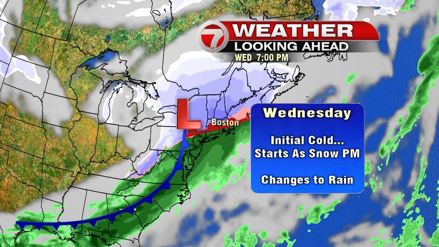 There is some milder air that wants to move in and push the rain snowline farther north – but there are still a couple of questions here that still need to be answered: How quickly will that happen? How far north are we talking? Regardless, I think it’s likely that north of the Mass Pike we’ll end up with several inches of snow accumulation before a potential changeover to snow (but it may never happen for this area). Plowable snow (a couple to a few inches) looks fairly likely for the rest of us, with the quickest changeover to snow reserved for the Cape and islands, which may only leave behind a coating to an inch or so. It looks more likely than not that we’ll be making up another snow map for Wednesday – but those specific numbers are not nailed down yet. Stay tuned. – Breezy