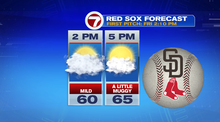 Friday starts off with clouds and some drizzle, but will become nicer into the afternoon. It’ll be quite breezy once again (gusts largely in the 20s) but temperatures rebound! Highs will be in the 60s– good news for those headed to Fenway for the Sox home opener.
