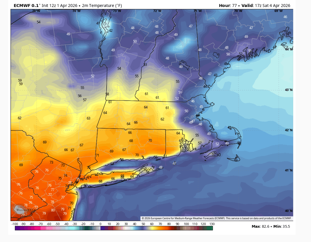 While today wasn’t the brightest, it certainly was warm! Highs ranged dramatically depending on your location, but for the most part they were well above average! This, however, was as a cold front lingered not so far in the distance, and now that that front is moving on through Southern New England, you’ll feel a dramatic difference.