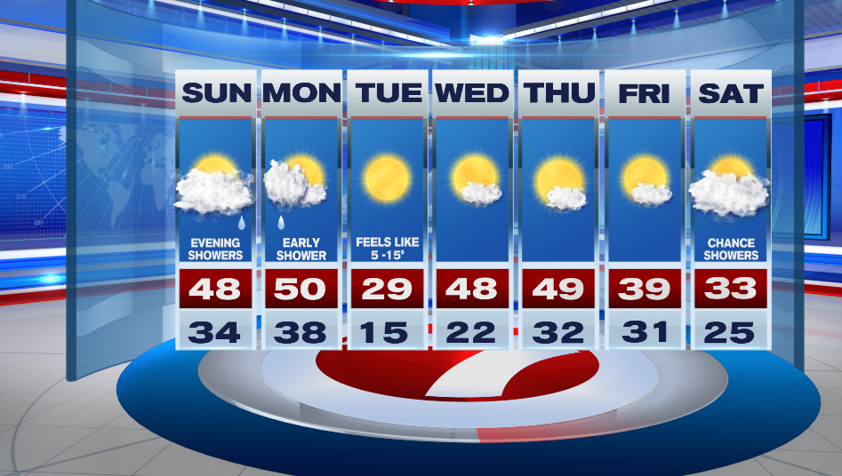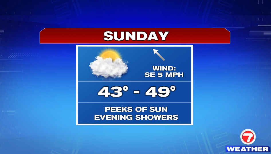 7Weather- Most of the daylight hours are dry Sunday, and then showers move in around sunset.
