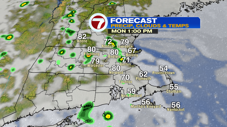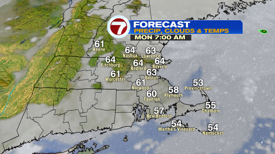 Monday morning will have patchy fog and clouds with temperatures in the low and mid 60s. It will be slow to clear, but I do think we will eventually see some clearing. This sunshine will allow out temperatures to jump into the low 80s.