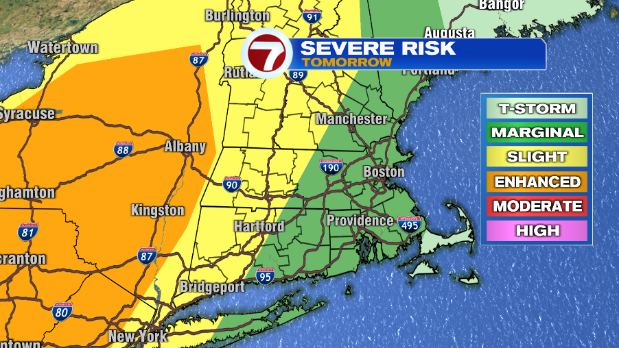 Timing plays a big role on our risk of severe thunderstorms. If the line of storms we are watching is barely arriving into western Massachusetts at 7PM, then that line will likely fall apart. At that point we lose the energy from the sun that is fueling those storms.