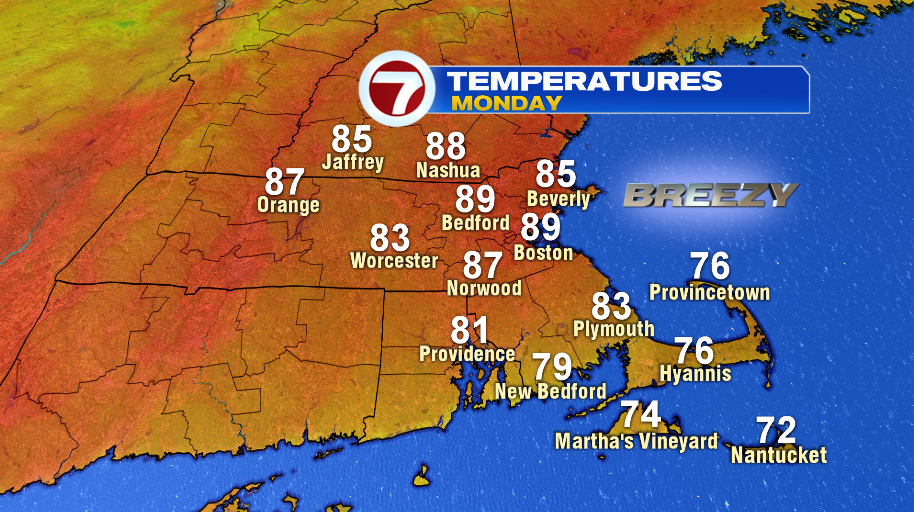 There could be patchy fog early Monday morning, and temperatures will be in the low and mid 60s.