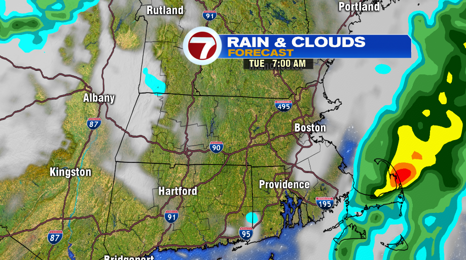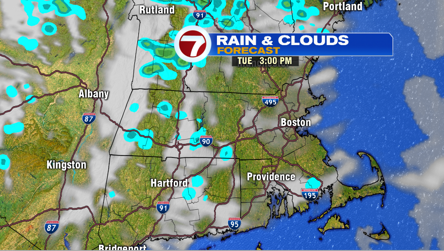 There will be a few lingering showers on the Cape & the Islands around 7 AM, the rest of us are dry. We see some sun by mid-day, but lingering moisture keeps skies partly cloudy. Temps reach into the mid 70s.