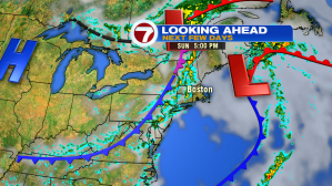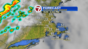 We could see a few pop-up downpours to the west, ahead of the main line of showers with embedded thunderstorms that move into southern NH, central MA between 5PM – 7PM, with Boston staying dry through at least 7PM.