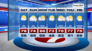 As for the forecast for the rest of this weekend and through the next work week, we do have some shower chances, but those hold off until Sunday afternoon/evening.