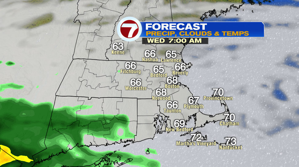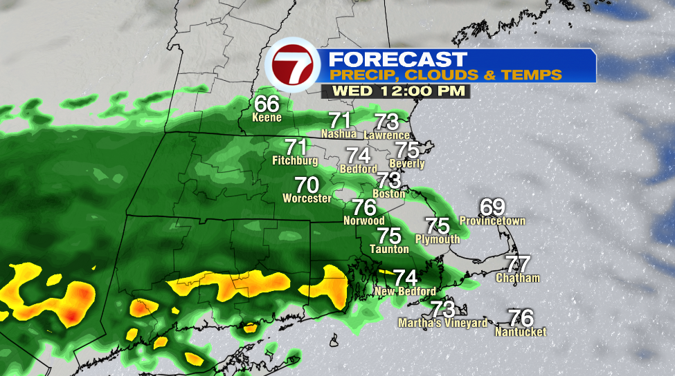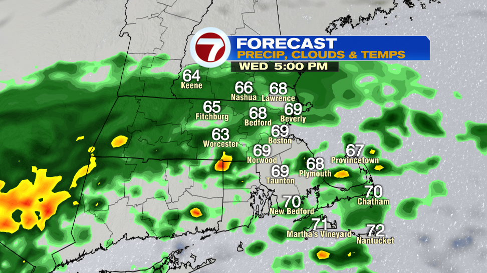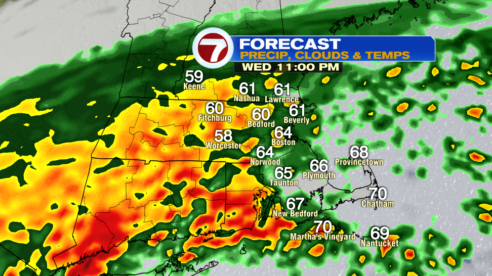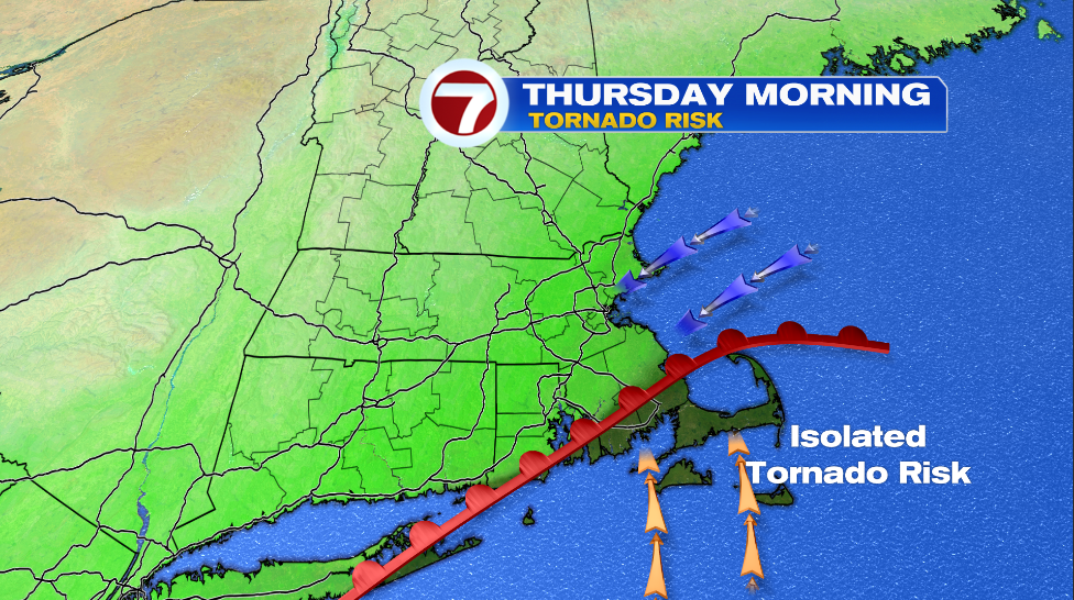 Most of the area falls under “stable air” north of the warm front where we are not expecting any severe weather. The Cape and the Islands and the southern parts of Bristol and Plymouth County fall under “unstable air” south of the warm front where we could see an isolated tornado from the remnants of Ida.