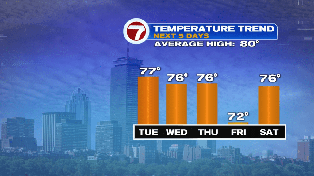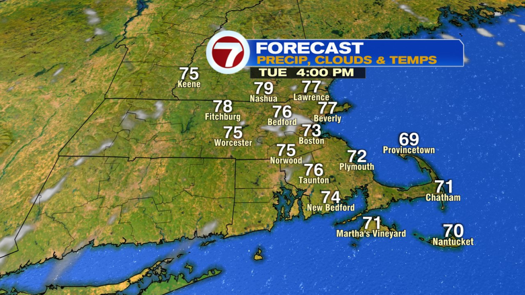 That’ll leave us nice and dry the next few days with mostly sunny skies today and tomorrow. The forecast is almost a cut and paste from this afternoon, to tomorrow afternoon as temps run low to mid 70s coast to upper 70s to 80 inland. All and all, superb weather the next couple of days with low humidity and comfortable cool overnights.