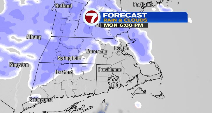 Chances for snow begin in the late afternoon with snow becoming completely widespread by Monday evening.