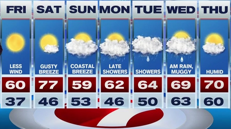 Saturday is mild, however, the winds start whipping up, gusting 30-40mph. Be careful with the yard work as damaged tree limbs may drop down in the gusty breezes. If there’s any rain tomorrow, it’ll be a late-day showers/rumble of thunder across northern Mass and southern NH as a cold front drops down. On the other side of that front, it’ll turn much cooler Sunday, with highs in the 50s to near 60.