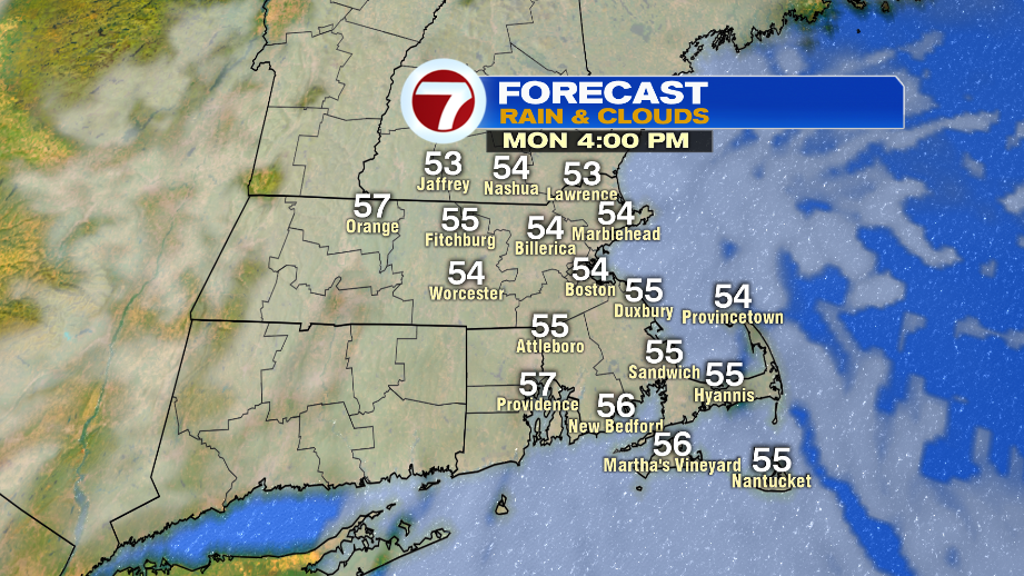 Temperatures don’t move up much throughout the afternoon. Highs will be between 53-59º.