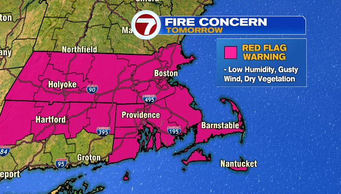 However, this is with a very dry airmass with strong wind gusts, a Red Flag Warning has been issued for the Bay State tomorrow. Any fire that starts could spread very quickly with the conditions tomorrow.
