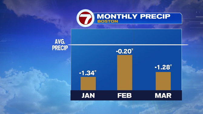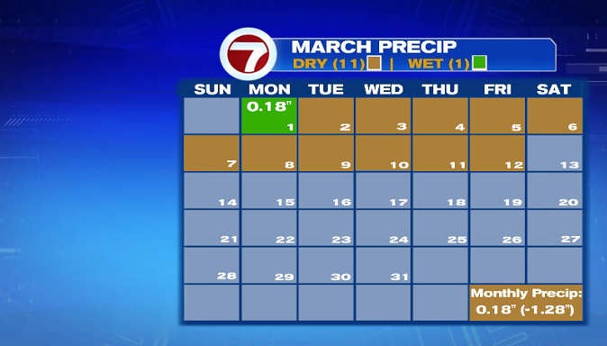 This month so far, we’ve only seen one day with measurable rainfall which was on March 1st. Plus, the last two months have seen below average precipitation, and so far March has been running on that same trend.