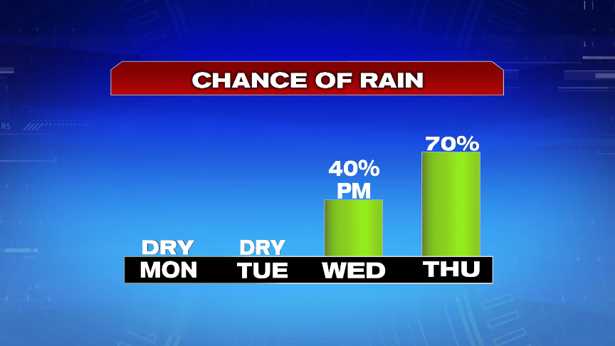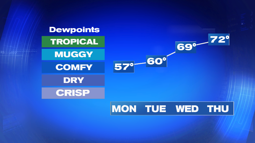 As a warm summer weekend wrapped up, the humidity started to drop off. This morning, we start off with that lower humidity and will enjoy a nice day with a lot of sunshine and warm temperatures. Highs top off in the mid to upper 80s, allowing for a top notch summer weather day.