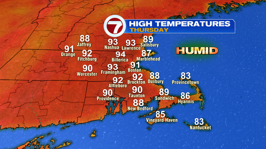 It will be hotter on Thursday with highs in the low and mid 90s. With the humidity it will feel like the upper 90s.