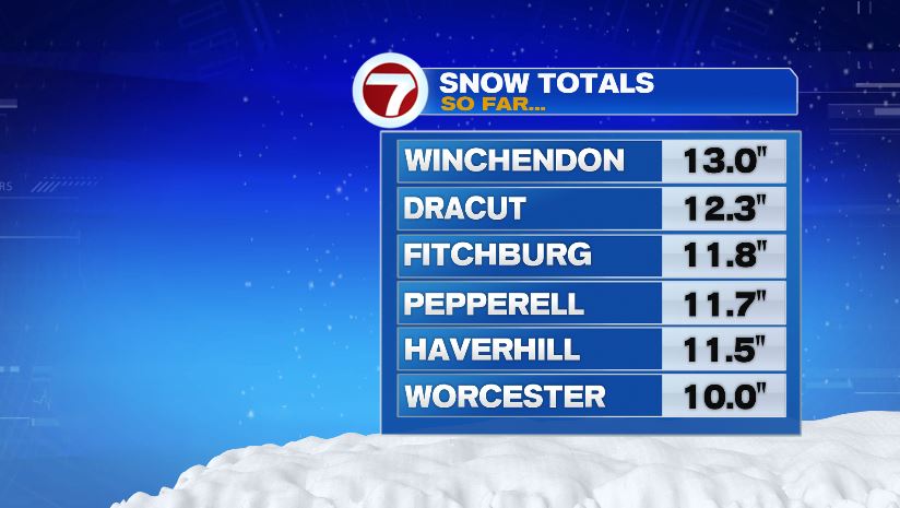 And what about last night’s snow? Well it was record-setting for both Boston and Worcester! The total for Worcester overnight was 10″ but 8.9″ of that falling before midnight and thus counting toward the daily record.