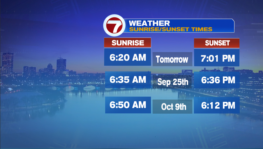 Sunday will be our last 7PM sunset. We lose about 1 hour and 20 minutes of daylight in the next 4 weeks. By Sunday, October 9th our sunset will be at 6:12PM.