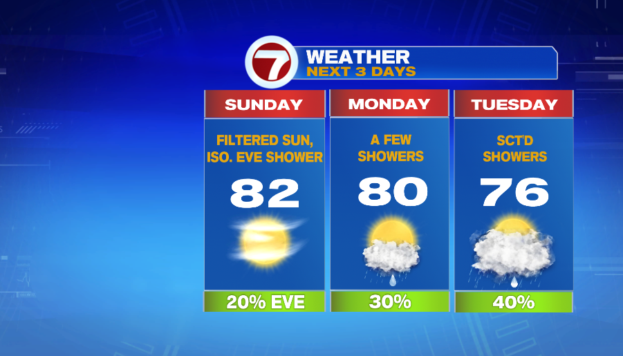 7Weather- We’ll have filtered sunshine Sunday and then the week starts with a few showers.