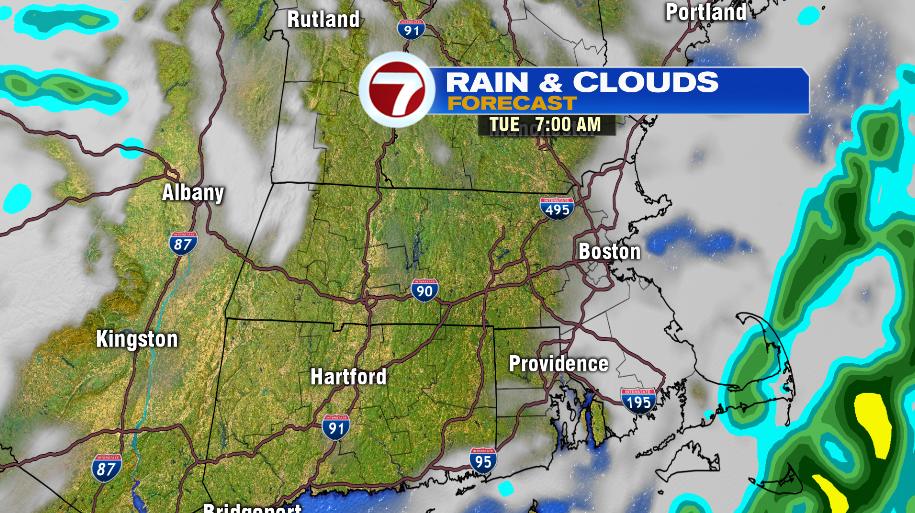 Clouds will linger along the coast early Tuesday morning, and there could be a shower on the Cape.