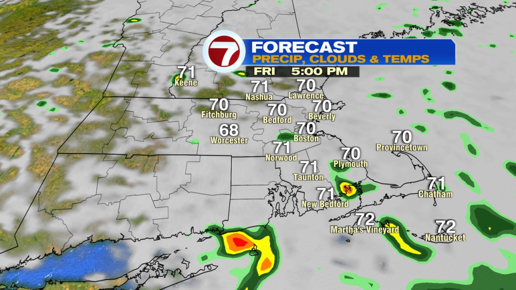 In a summer that has seen no lack of water (already the 7th wettest in Boston, 4th wettest in Worcester), we continue that theme again this morning as drenching rains soak the morning commute. Many towns and cities will pick up 1-2″ of rain, with some locally higher totals likely. The steadiest rain is this morning as showers and storms become more hit of miss this afternoon and evening. With that said, any leftover shower and storm will still be capable of a downpour as the atmosphere is juiced with a lot of water vapor. Temps will hold near 70 this afternoon as humidity jumps up. Temps actually hold near 70 overnight tonight too.