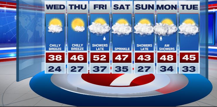 Blustery and cold for the day. The sun helped a bit but the dang wind kept getting in the way of nice moments. I’ve always held the belief that the wind is the true enemy of the coldest season. Give me 30 degrees and calm conditions over 40 degrees and wind any day–including Taco Tuesday! Our high temps were close to 40 this afternoon and that was below normal by a few degrees.