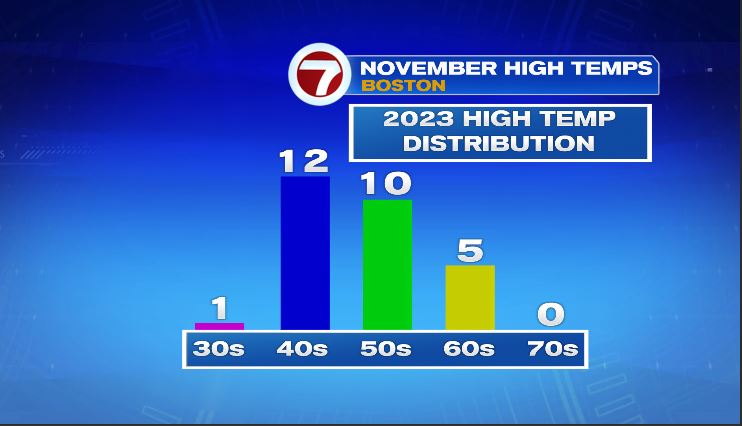 22 of 30 days either have high temps in the 40s or 50s. This November has been pretty typical…