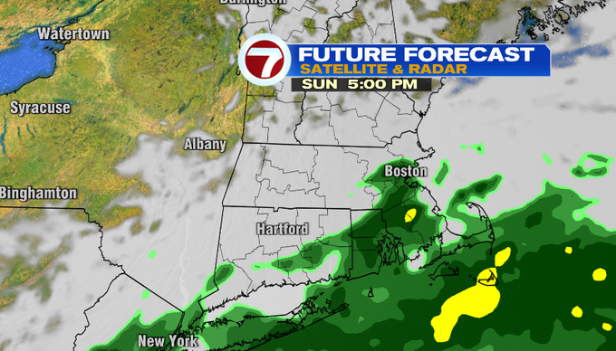 Take advantage of tomorrow morning. The moral of the weather story tomorrow: the farther north you are, the more dry hours you’ll get. We’ll wake up to a lot of clouds. We should start to see the northern fringes of the precipitation shield by noon for the South Coast, Cape and Islands. Some showers could develop near Boston by the evening. The heavier rain pushes north and fills in Sunday night into Monday morning. At this point, the gusty wind will pick up as well. Expect a wind-driven rain Monday morning. We’ll continue to get waves of rain, heavy at times Monday. Scattered showers linger, especially for the coast, Monday night into Tuesday. By Tuesday, the rain will not be as heavy.