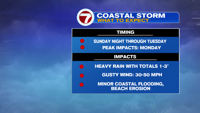 We’ll also watch for minor coastal flooding and beach erosion, especially for our east-facing beaches.
