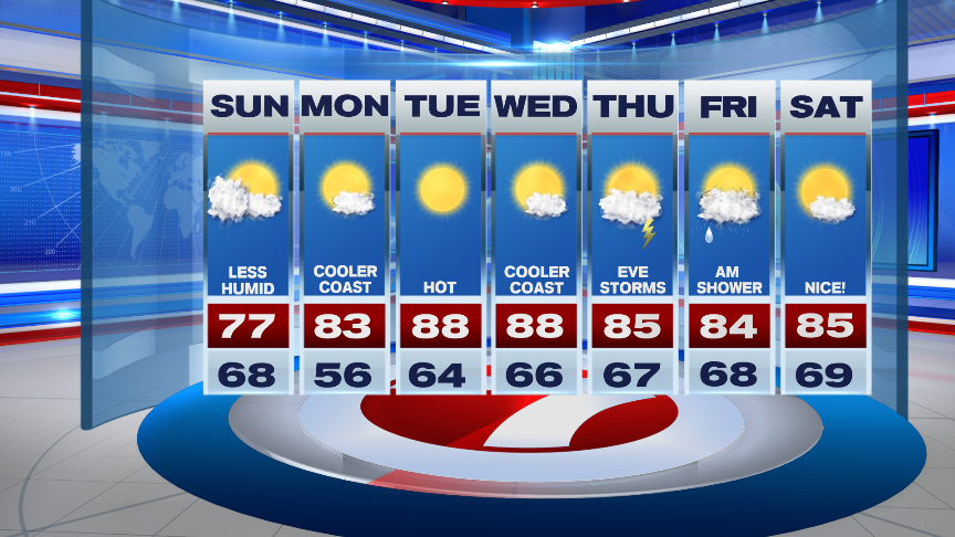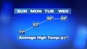 Monday is another beautiful day with highs into the low 80s under mainly sun-filled skies. The summery heat returns Tuesday and Wednesday ahead of our next best chance for showers/storms late Thursday into early Friday, but overall we’re not tracking any washouts.