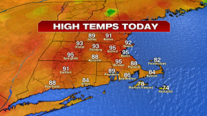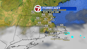 Thankfully, much more comfortable conditions will be settling in for our Sunday. We’ll start off with some clouds and some patchy fog for the S. Coast and the Cape and Islands, otherwise emerging sunshine will prevail from north to south. Temperatures tomorrow afternoon are expected to rise into the mid to upper 70s. It will be breezy with a NE breeze between 10-15 mph, gusts up to 25 mph.