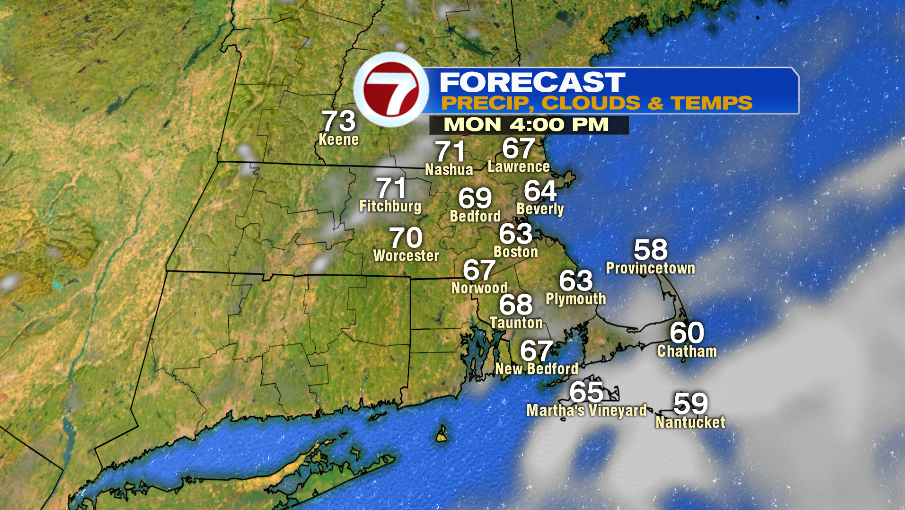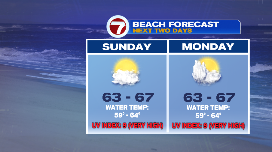 The next two days are decent beach days, that is if you don’t mind it being a bit cool. A northeast wind keeps the coast between 63-67º the next couple of days. Monday is cloudy initially, and then id gradually clears up.