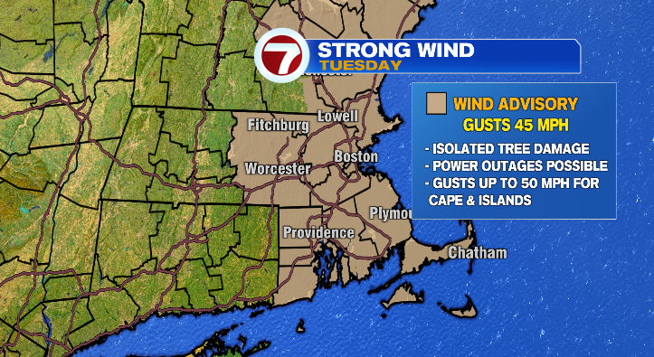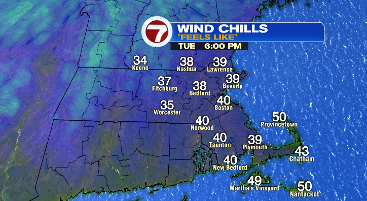 Overnight lows into Tuesday morning will drop to the low 40s with highs in the mid 50s. There will be plenty of sunshine, however with the major wind, it’ll feel pretty brisk.