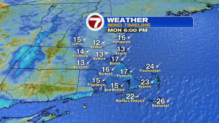 The wind from the northeast increases today, into tonight, gusting to 25mph inland and to 35mph at the coast. With the onshore breeze strong and consistent enough, there may be some minor coastal flooding/splashover around tomorrow morning’s high tide.